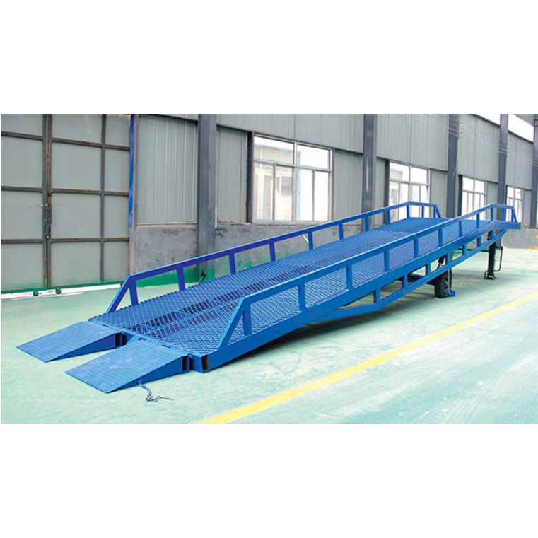 移動式裝卸登車橋用于現場無裝卸貨平臺或需要流動裝卸貨物的場所。如果物流現場沒有裝卸貨平臺,作為補救措施,移動式登車橋是非常適用的方案之一,移動式登車橋相當于一個移動的鋼結斜坡,叉車同樣能直接駛入卡車車廂內部進行批量裝卸作業(yè)。只需單人操作,不需動力電源,即可實現貨物的安全快速裝卸。