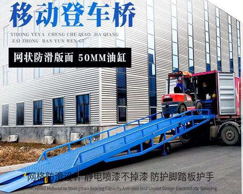 煙臺登車橋-煙臺集裝箱卸貨登車橋-物流登車橋用于無裝卸設(shè)備的貨臺及流動裝卸場所,是與叉車配合使用的貨物輔助設(shè)備。借助該設(shè)備,叉車能直接駛?cè)肫囓噹麅?nèi)部進(jìn)行批量裝卸作業(yè)。只需單人操作,不需動力電源,即可實物的安全快速裝卸。既可使您減輕勞動強度,又能成倍提高裝卸作業(yè)效率,加快物料流通速度,獲取更大經(jīng)濟(jì)效益。