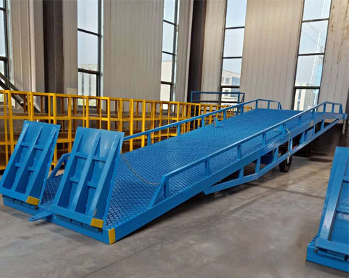 移動登車橋一端與貨臺等高,另一端搭在車廂后緣上,并能根據(jù)不同的車型及裝車過程中車廂的變化,自動調(diào)整高度。廣泛用于無裝卸設備的貨臺及流動裝卸場所,是與叉車配合使用的貨物裝卸輔助設備。借助移動式登車橋,叉車能直接駛?cè)肫嚰b箱內(nèi)部進行批量裝卸作業(yè)。只需單人操作,不需動力電源,即可實現(xiàn)貨物的安全快速裝卸。