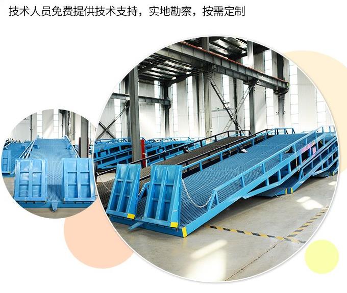 移動登車橋坡面采用特制的高強度齒形鋼格板,具有防滑性能,使叉車有更好的爬坡能力和操控性。即使在雨雪天,仍能保障正常作業(yè)。隨機配置的剎車墊,能有效防止叉車在登車橋上行走作業(yè)時,登車橋發(fā)生溜車及移動以保障作業(yè)安全。用戶在選購登車橋時,應根據(jù)自己的使用范圍,使用頻繁程度,利用率,額定起重量等因素進行綜合考慮,選擇適合本單位使用要求的登車橋